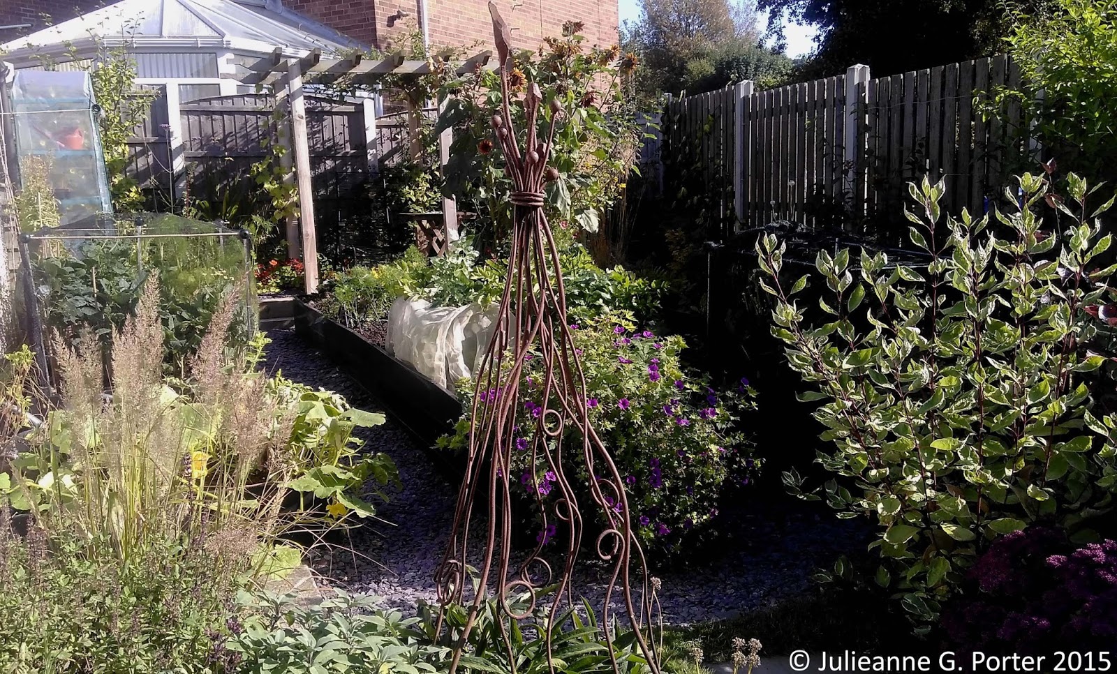Accepting that the perennial borders might not always get well looked after: one of the reasons I stopped doing End of Month View a couple of months ago, is that my Long Shady Border was getting literally no attention from me and it was looking pretty messy and un-weeded. I just had no time to maintain it, as what little energy I had was focused on the vegetables. In some ways, this is where growing hardy perennials comes into their own, as they can manage for a time without too much attention. Most of the plants were in good health, some starting to take over(!), but the border was looking scraggly, the weeds getting bigger and and any thoughts about editing some sections were out of the question. Although I'm cutting down on the veg growing next year, I need to accept that I cannot go and use that 'spare' energy on the perennials. No, I have to do less, a lot less, and the point is to cut back. The perennial borders may continue to be scraggly. So be it.