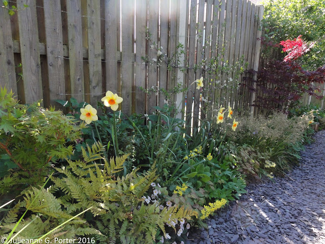 In general I'm happy with this end of the border, I just need to move Dryopteris erythrosora which is getting a bit big for its boots and over shadowing some smaller plants like Primula Guinevere. I'm not happy with the other end of the Long Shady Border, which includes the Bog Garden, and that is why there is no picture here. I've realised what I need to do to improve that end, but I'll leave that for another post.